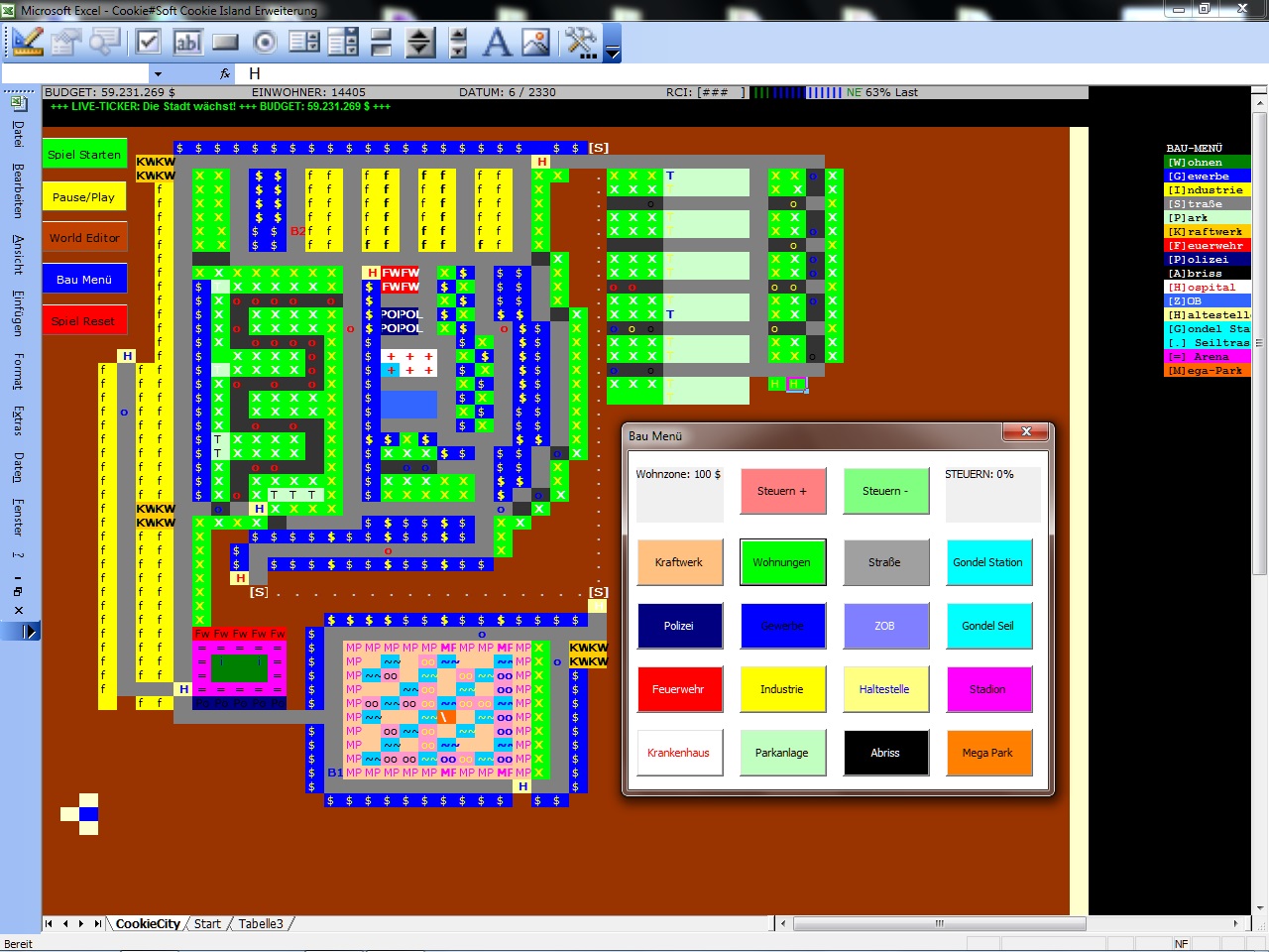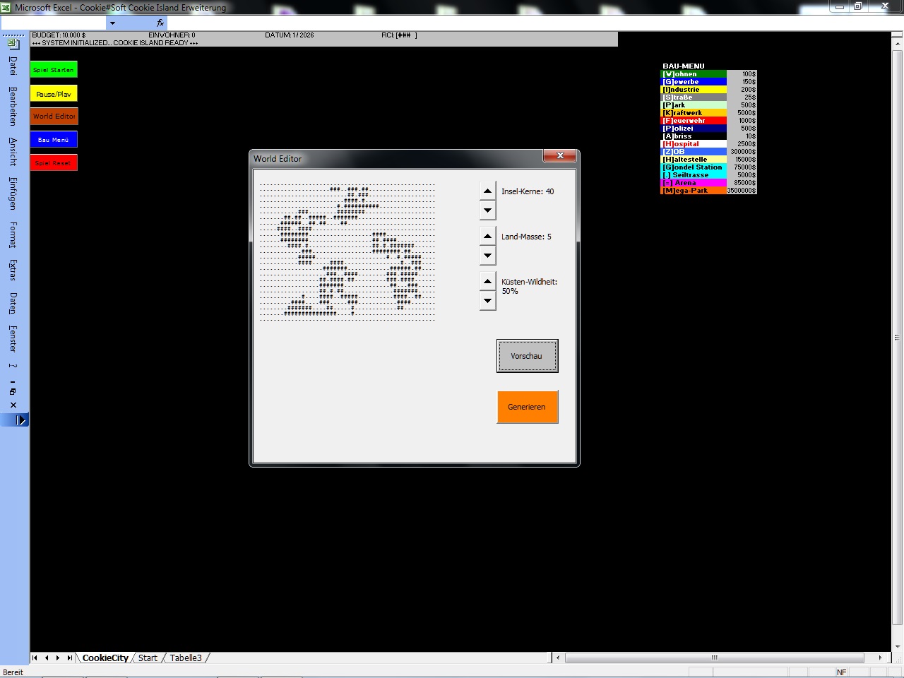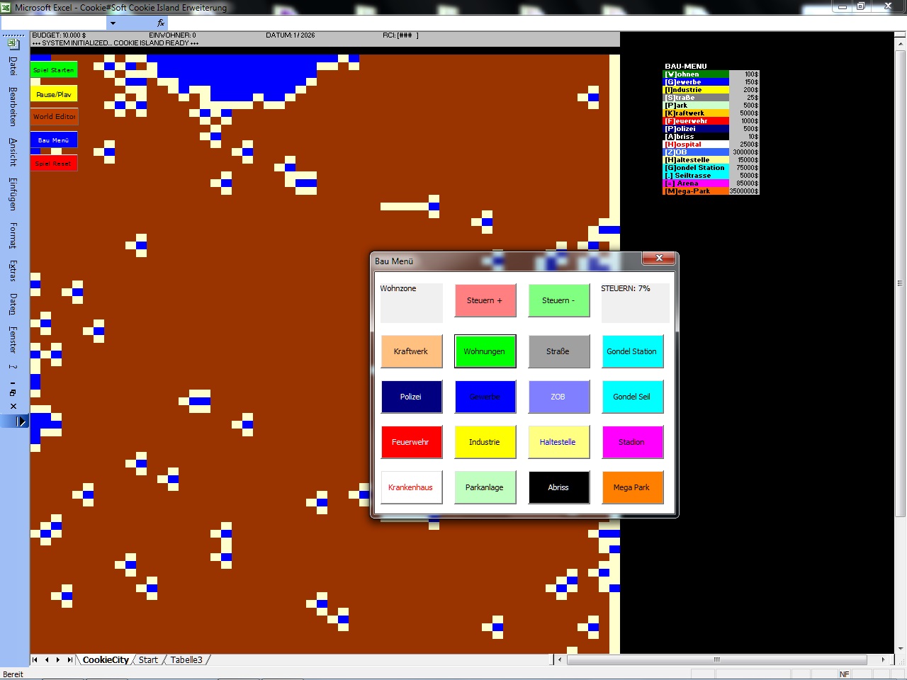 Das Inselabenteuer wurde komplett mit Excel VBA 2003 Windows 7 32 Bit programmiert. Retro Fans kommen hier voll auf ihre Kosten!